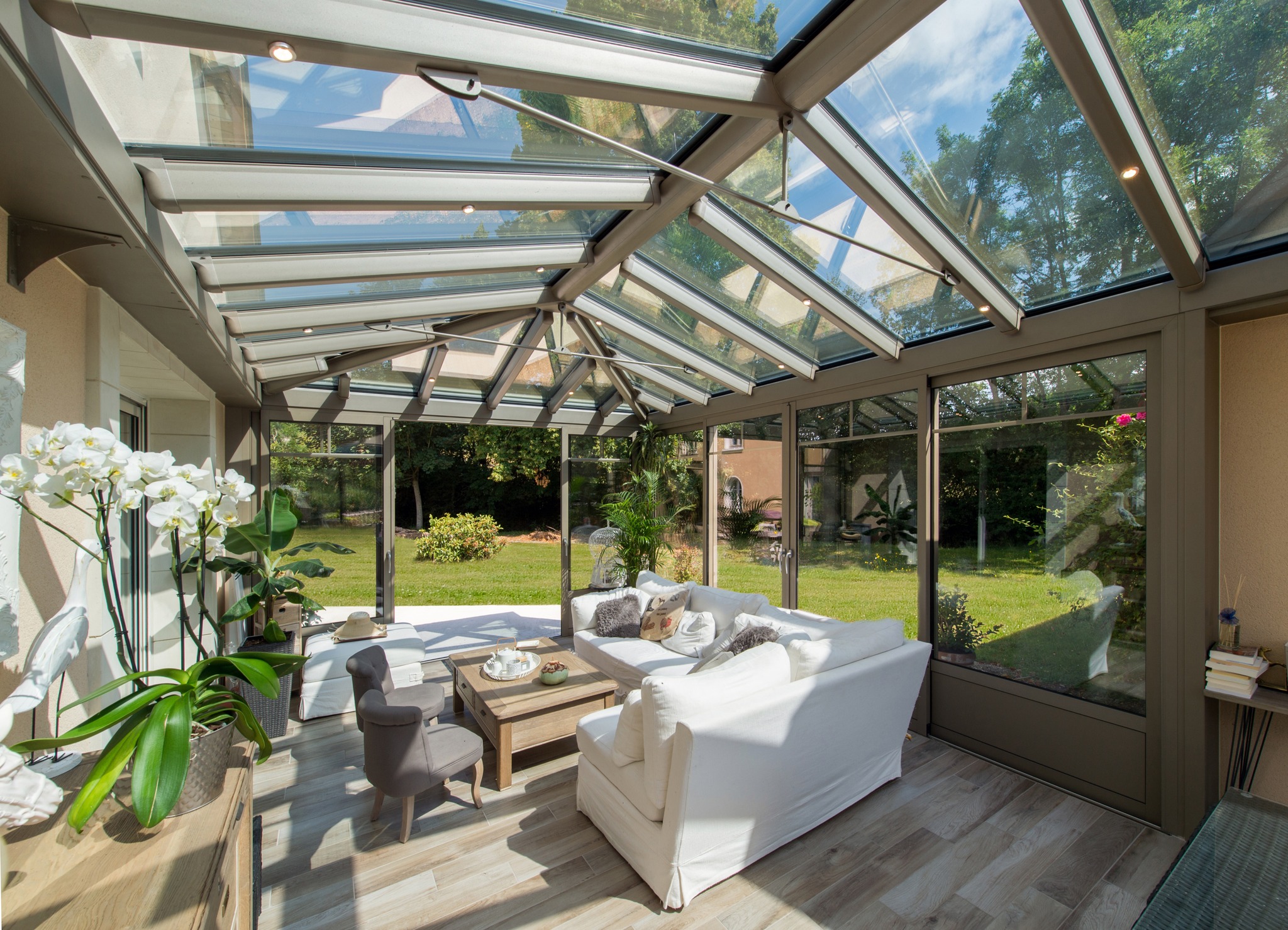 Offrez vous une lumière naturelle tout au long de l’année avec une véranda style verrière. Sa toiture entièrement vitrée vous apportera un bien-être absolu et un vrai apport d’énergie.